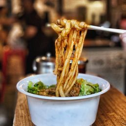 I usually come here; it is quite delicious and everything is made fresh. I would recommend you use the app to order because you get pints that way. I usually get the Handpulled noodles; the pork and chives dumplings and scallion pancakes. When I go the employees are always nice and friendly. I have been going to this place since it opened and it never disappoints. I do think the portions have gotten a little smaller but I know everything is more expensive. I would say their quality is always great and it is fresh. For me this place is a must stop in the neighborhood. The place is a very down to earth so it is a college town kinda of Lower east feel. To me it is amazing this place has remained the same quality of their food from when they first opened.